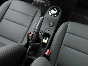 Phía dưới màn hình trung tâm là cần số và phanh tay điện tử được tích hợp dạng lẫy gạt. Các nút chức năng xoay điều khiển hệ thống giải trí, bấm đèn khẩn cấp, hạ kính bố trí ngay cạnh khay đựng cốc giống “đàn anh” VF 8 và VF 9.