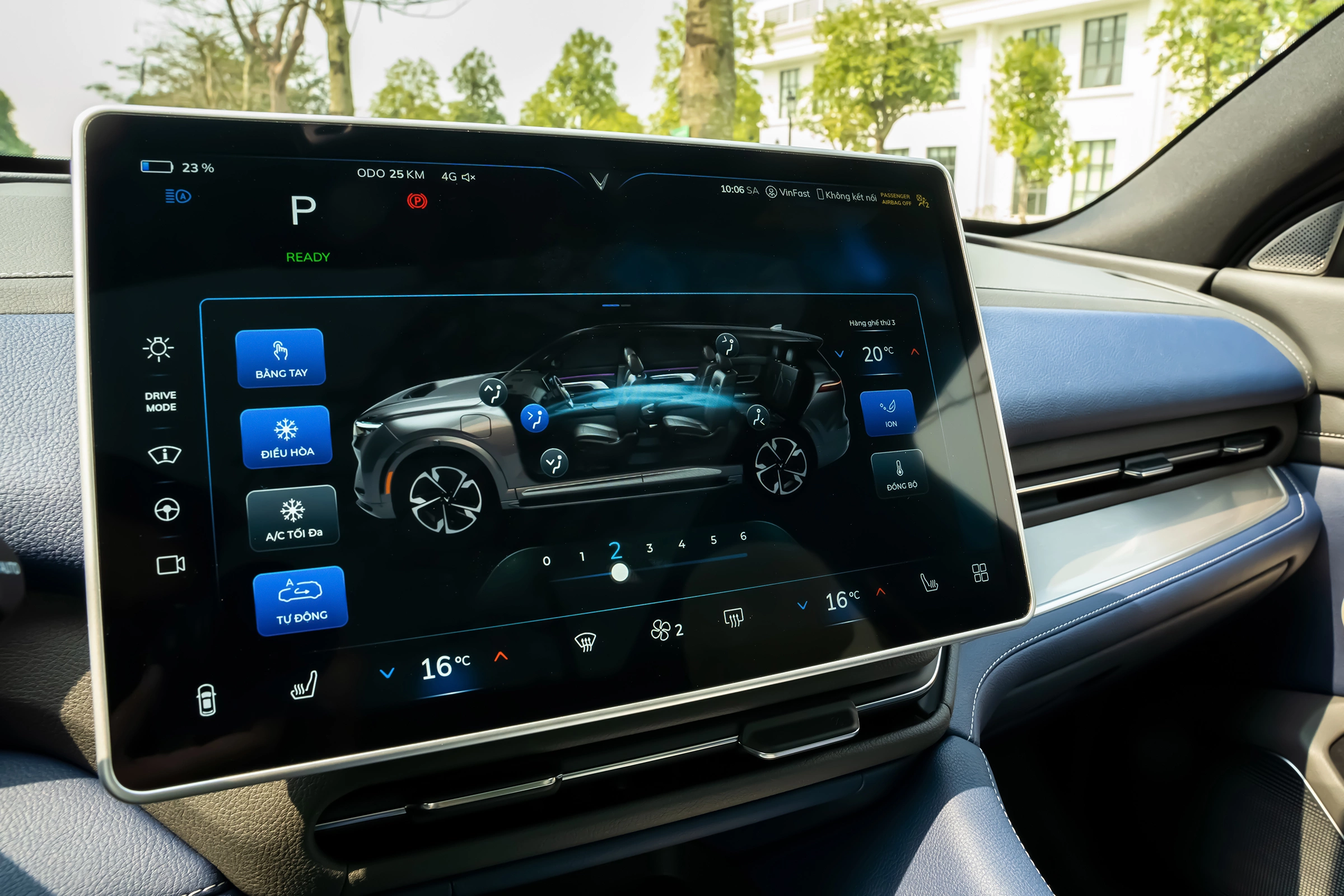 Tương tự như xe điện VF8, mẫu xe VinFast VF9 cũng được trang bị dàn điều hoà tự động có màng lọc HEPA với than hoạt tính đem đến bầu không khí trong lành và mát mẻ trong cabin xe.