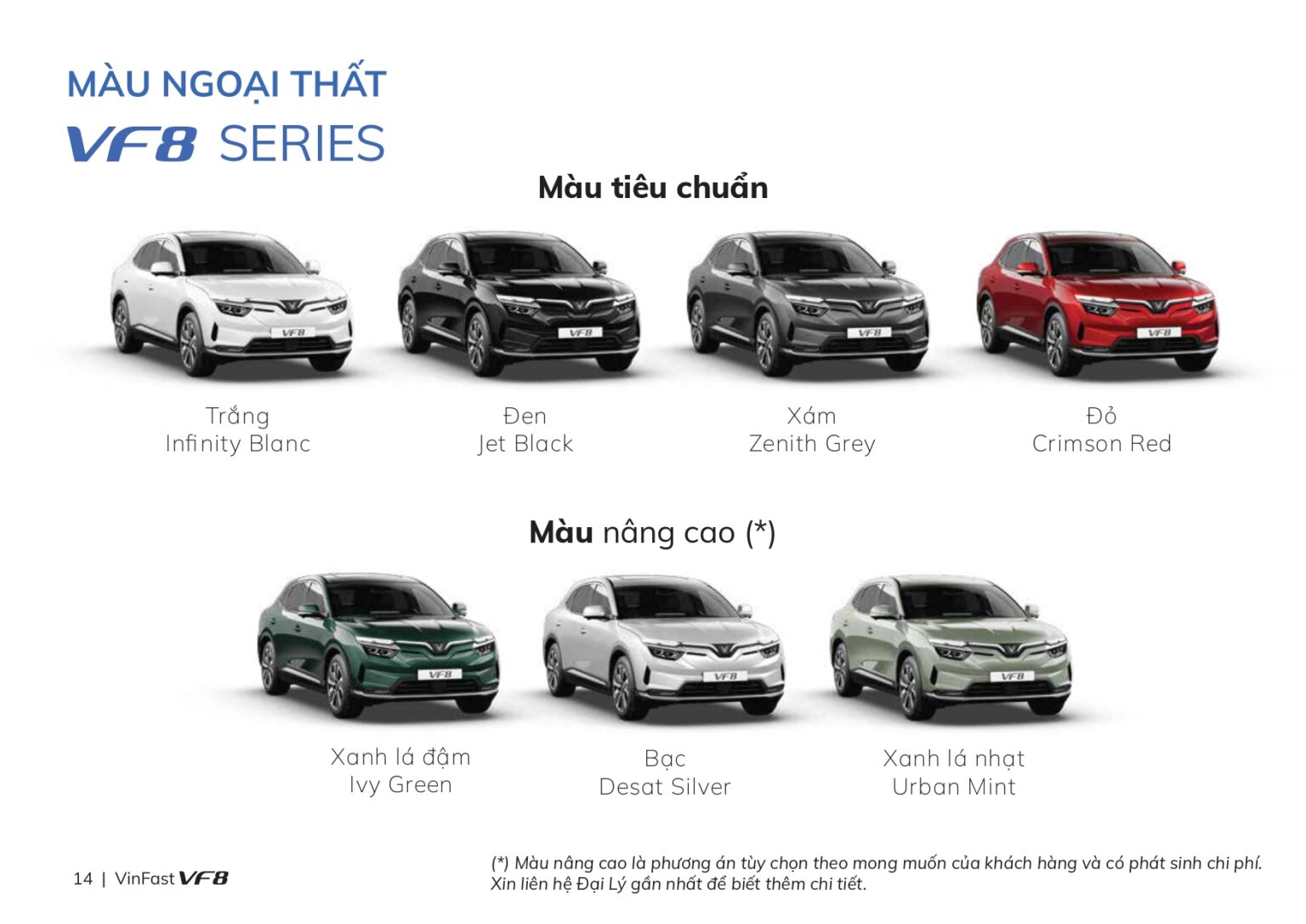 - VF8 ECO: Màu Granite Black hiện đại, dễ phối màu và giữ sạch.
