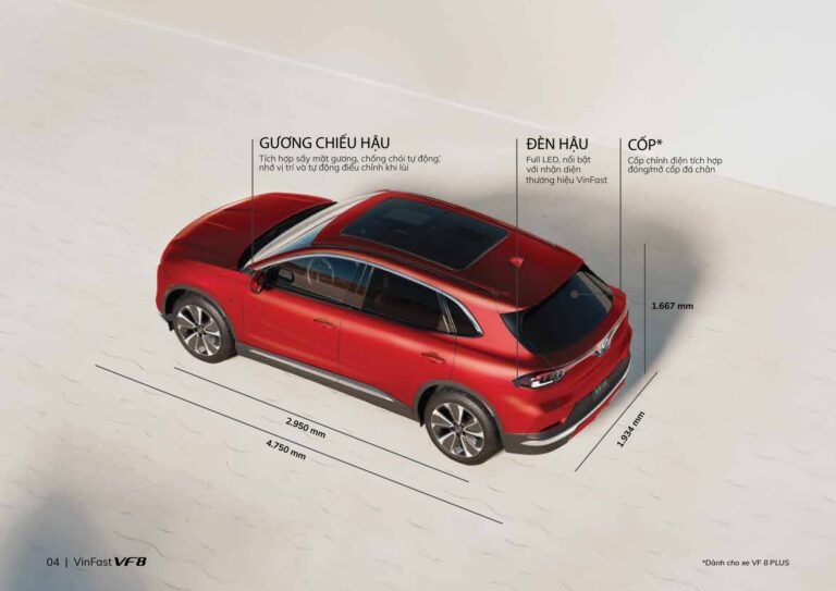 VinFast VF8 không chỉ nổi bật bởi kiểu dáng thể thao và hiện đại, mà còn mang đến những tiện ích vượt trội trong từng chi tiết thiết kế. Với các đường nét cân đối, tinh xảo và loạt trang bị thông minh, mẫu SUV điện này tạo nên sự khác biệt trong phân khúc xe điện tầm trung – cao cấp.