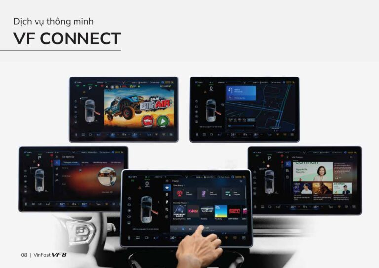 Không chỉ là một phương tiện di chuyển, VinFast VF8 còn là trợ lý số toàn diện với hệ thống VF Connect hiện đại, mang đến trải nghiệm lái xe thông minh, tiện lợi và an toàn hơn bao giờ hết.