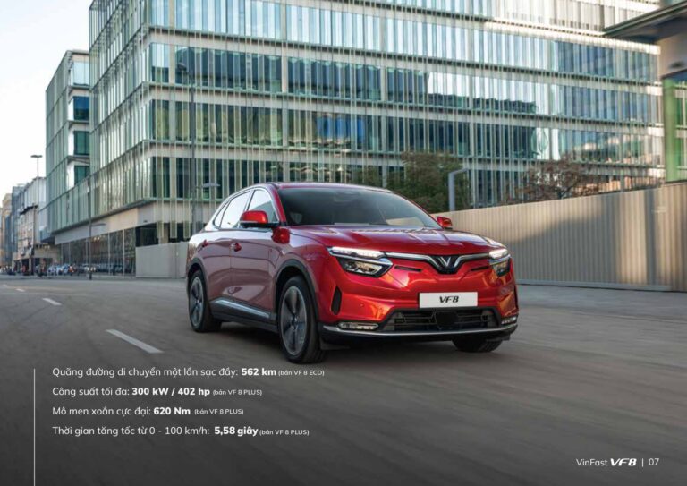 VinFast VF8 là mẫu xe SUV thuần điện thuộc phân khúc D do hãng xe Việt Nam – VinFast sản xuất và phát triển. Sở hữu thiết kế hiện đại, động cơ mạnh mẽ, trang bị hàng loạt công nghệ thông minh cùng khả năng vận hành ấn tượng, VF8 nhanh chóng chiếm được cảm tình của người dùng trong và ngoài nước.
